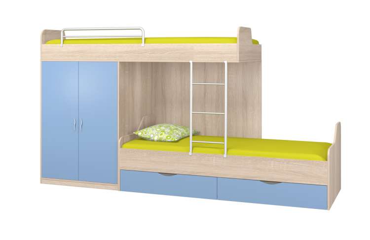 Габариты (Высота/Ширина/Глубина) 1500х2820х860 мм.,спальное место: верх 2000х800 мм.,низ 1900х800 мм.