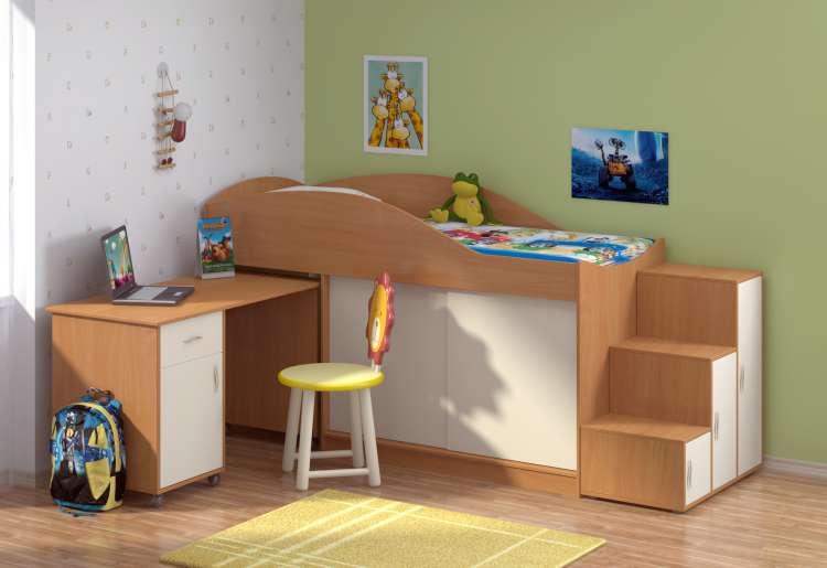 2. рабочего стола.Стол можно поставить отдельно от детской.